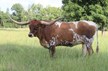 NS Cutie Pie is an integral part of our Horseshoe J Feat linage. Feat was an amazing Peacemaker daughter from Jimmy Jones program with over 90 inches of beautiful twisty horn. Her dam, Horseshoe J NS, sold at the 2023 Legacy sale for $115K. She is our first bred and owned cow to hit 90” and did it at just under 5 years old with gorgeous twist. We look forward to Cutie Pie carrying on this family tradition of lateral twist, color and conformation!