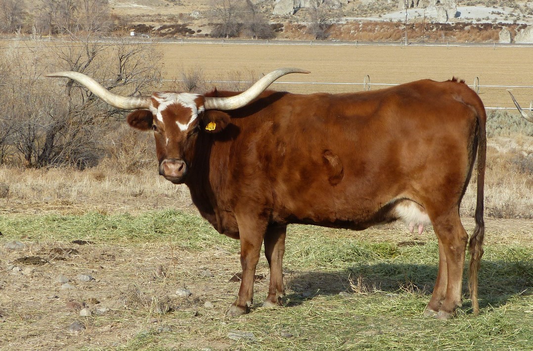 This cow has proved herself with her beautiful longhorned daughters. She is a great mom that milks very well. Produces way beyond herself.
