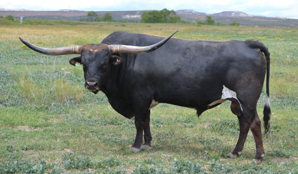 Our fantastic young herd sire! His famous sire and dam are both over 80". Without a broken horn tip, Archer would be 83" by now, himself. Makes tall, flat horned offspring out of most any cow. Semen $150 per straw. AI# 813. Archer died after a pasture accident on Oct 19, 2016.