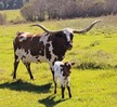 Wonderful producer and multiple Horn Showcase Winner. 105.25" Tip-to-Tip on 10/8/22 and 106" TTT on 2/21/23. We are so excited to have had her join our herd this spring from the industry great Nancy Dunn. She is a daughter of the great Fifty-Fifty BCB and a proven producer. She is bred to Dunn Vortex for a late fall calf and we can't wait to see all she will add to our herd.