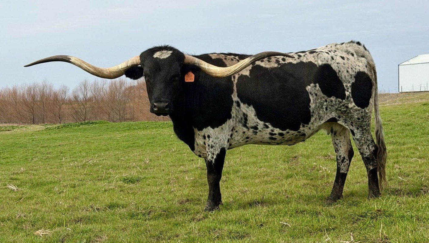 SOLD!!! Going to Brazil! Smooth as Chocolate, Bold as Her Bloodline 🍫 Black and white beauty with a presence that stops you in your tracks — this girl is as smooth as a chocolate bar and twice as rich in pedigree. Her twisty horn set goes on for miles, adding elegance and edge to a frame that’s built to impress. An own daughter of White Dragon and out of Overkill, she carries the kind of lineage that doesn’t just decorate pedigrees — it defines them. She’s not just part of our herd — she’s part of our foundation. The kind of female that programs are built around and futures are shaped by. Producing us calves every year! PV'd and DNA on file