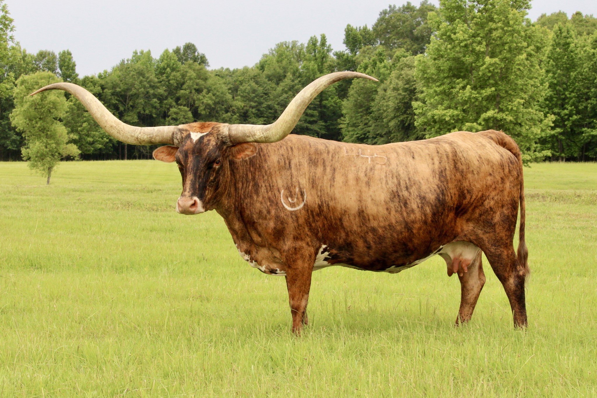 This gorgeous Cowboy Catchit Chex daughter is a delight to own and see everyday! She has over 86.25” of beautiful rolling horn and a gorgeous brindle color. We are retaining heifers as replacements.
